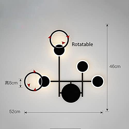 Specification: SHYPT Anneau Rotatif LED Lampes murales Sconces de Chevet for Chambre à Coucher Salon Loft Aisle Accueil Éclairage intérieur (Color : Black)