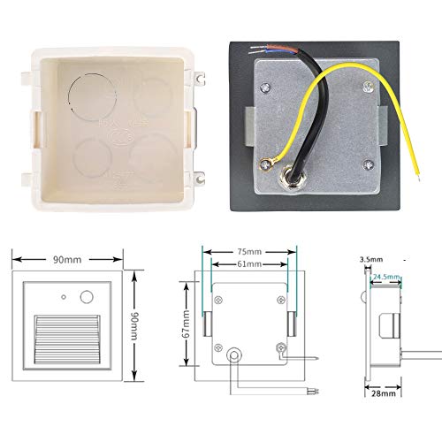 ✨【Dimensions du produit】 Avec la technologie de moulage sous pression, moderne et simple, AC85-265V, peut être directement connecté à 230V sans transformateur. Dimensions du produit : 90 x 90 x 32 mm, dimensions d’encastrement : 86 x 86 x 50 mm (ne convient malheureusement pas à une boîte ronde de 60 mm. Pour éviter un mauvais achat, veuillez vérifier les dimensions avant l’achat