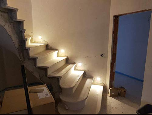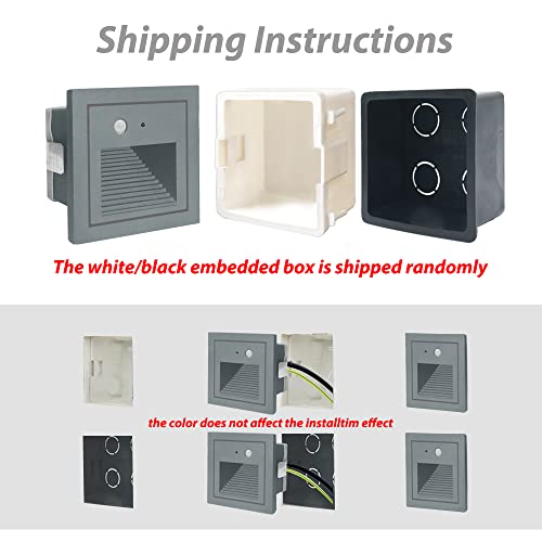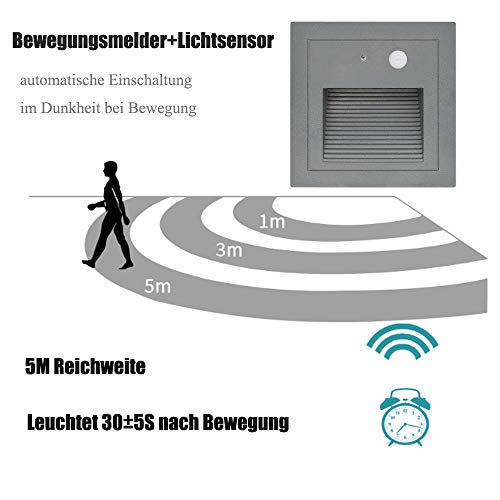 Specification: Arote 8pcs 3W LED Applique Encastré Murale d’escalier Carré, avec Détecteur de Mouvement, éclairage étape escalier lampe Aluminium extérieur IP65 Chaud Gris