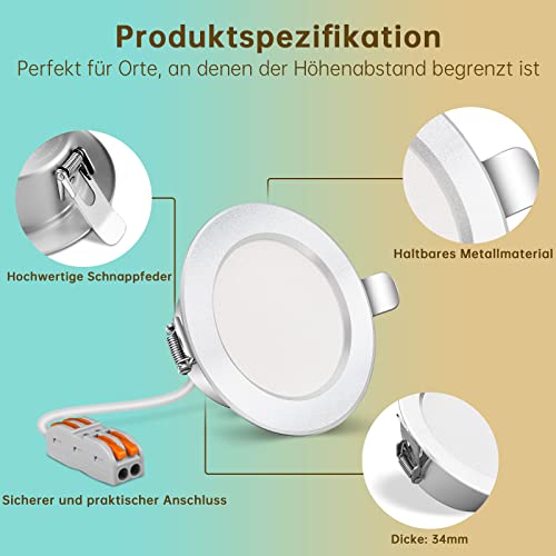 Specification: LED spot encastré, extra plat IP44 encastrable lampe plafonnier plat rond, 3 températures de couleur (3000K/4000K/6500K), AC175-265V 5W, Lot de 6