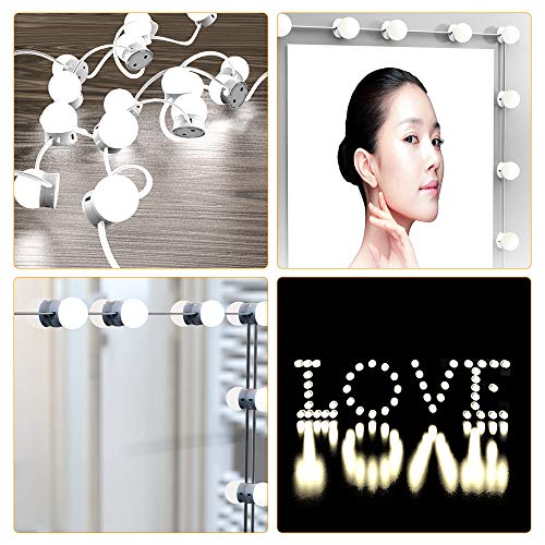 Specification: BEAUTME Lampe de miroir LED avec 10 ampoules à intensité variable, style hollywoodien – Lampe de maquillage – Lampe de maquillage – Décoration de la pièce – Câble USB (miroir non inclus)