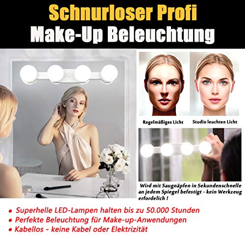 Specification: QYH Lumière de Miroir,Lampe de Maquillage Portable Sans fil Rechargeable lumière avec 4 ampoules LED luminosité de Couleur Réglable,éclairage pour Coiffeuse Salle de Bain Miroir