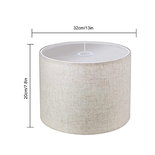 LgowithU Abat-jour en tissu, abat-jour à tambour moyen pour lampe de table, lampe murale, lampe de chevet et lampadaire, lin naturel, couverture rigide fabriquée à la main, 13″ x 13″ x 8″ (blanc)