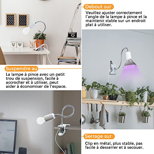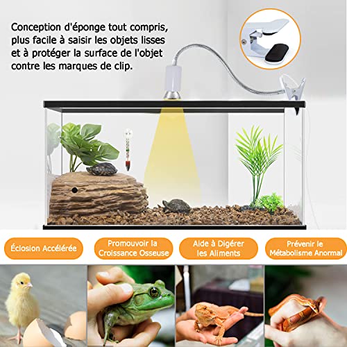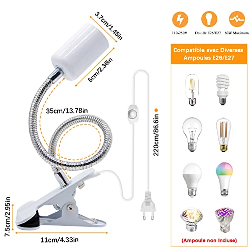 Specification: Douille Ampoule E27 à Pince,Lampe Clip,Lampe Chauffante Tortue,Lampe Reptile,Lampe avec Pince E27, 220CM Cable avec Interrupteur Dimmable,Clip de Base en Métal,pour Plantes Tortue Lecture