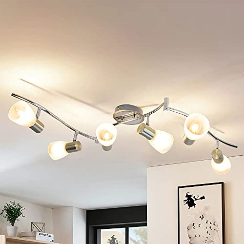 Specification: Depuley Plafonnier 6 spots orientables pour salon avec culot E14 (ampoule non incluse) – Plafonnier LED moderne blanc chaud – Bras de 100 cm – Pour bureau, salle à manger, chambre à coucher, studio