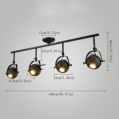 Specification: Rétro industriel plafonnier lumière mur lampe vêtements magasin rail rails lampes bar LED spots fond mur affichage Shot lumière LED Outfit long Rod plafond spots E27 (Color : Black-Four head)