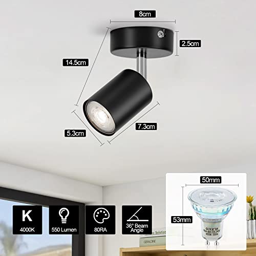 Specification: Gr4tec 4 x Spots Orientables 350°, 4 x 6W Ampoule GU10, Blanc Neutre 4000K, Plafonnier Led, AC 220V-240V, 550LM Luminaire Chambre, IP20 Éclairage de Plafond Pour Salon, Chambre, Couloir